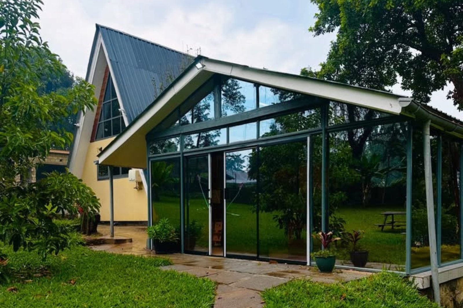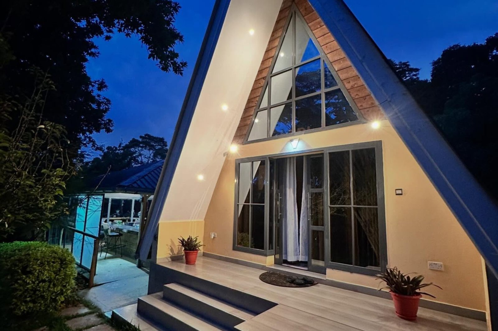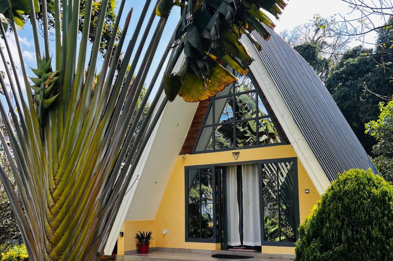 Tucked away in the rolling green tea fields of Tigoni, Tigoni A-Frame Cottage offers a refined countryside escape just outside the city. Its striking A-frame architecture creates a distinctive stay experience, combining contemporary design with warm, natural textures that reflect the surrounding landscape.